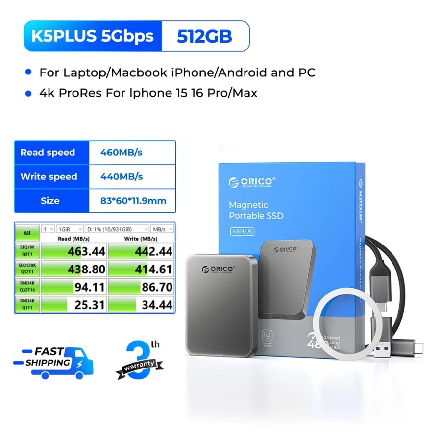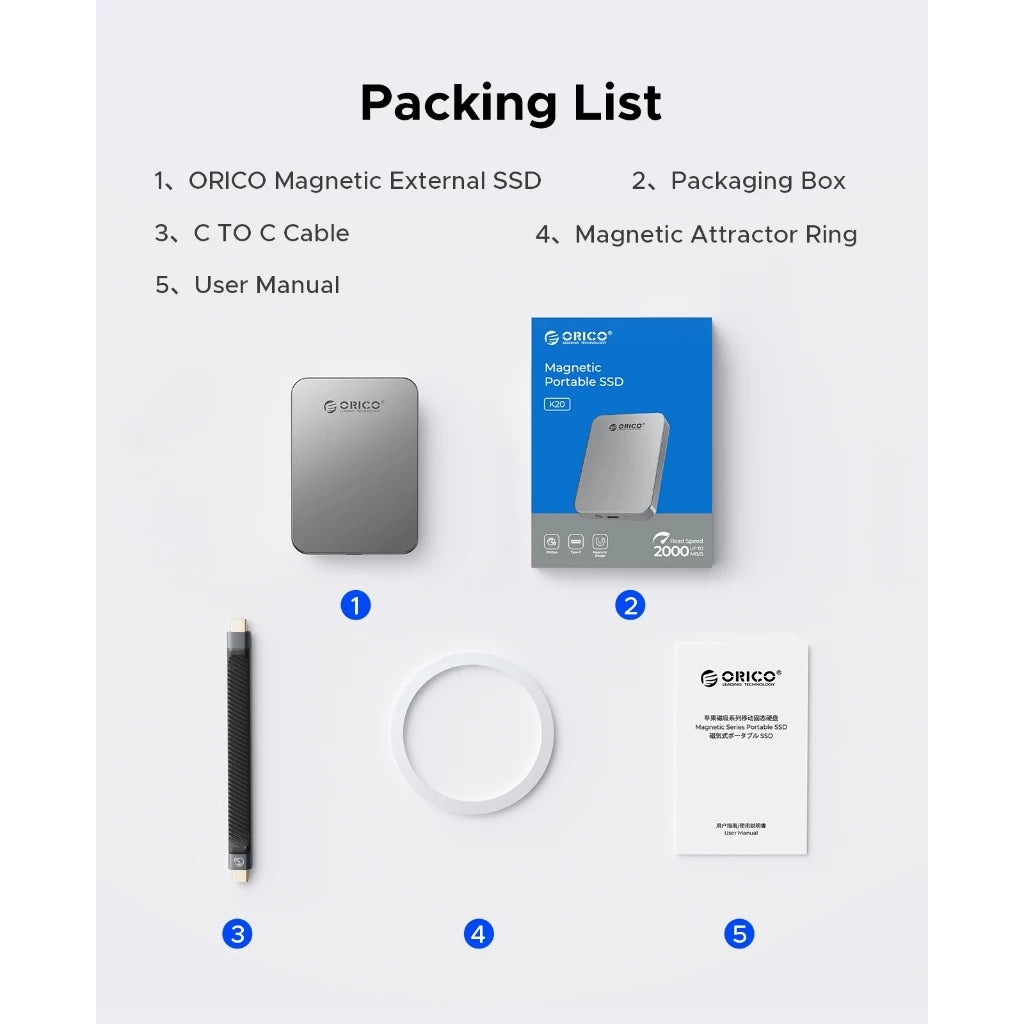 ORICO Magnetic External SSD 512GB 1TB 2TB 4K ProRes Video Storage Portable SSD for Phone, Computer, Tablet, Laptop