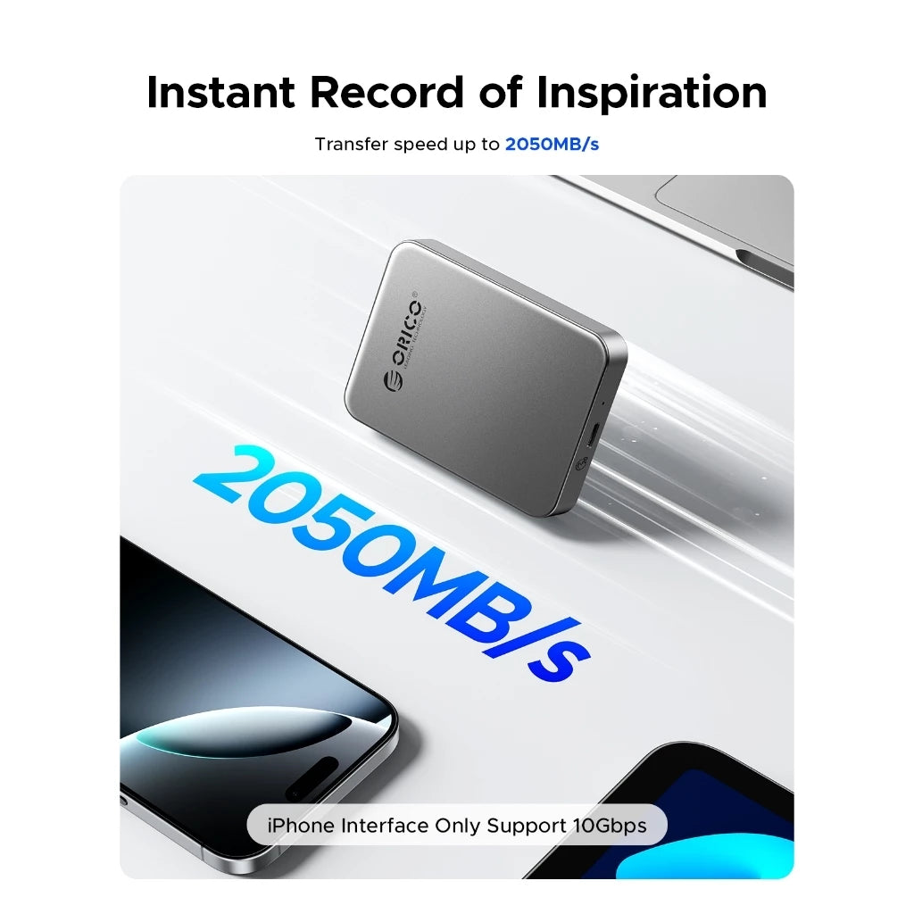 The ORICO-A20PLUS magnetic portable SSD is a remarkable storage solution tailored specifically for iPhone users. It addresses the common issue of insufficient phone storage, making it a great choice for self-media workers, VLOG enthusiasts, and short video photographers who require ample space to shoot and edit high-quality videos.