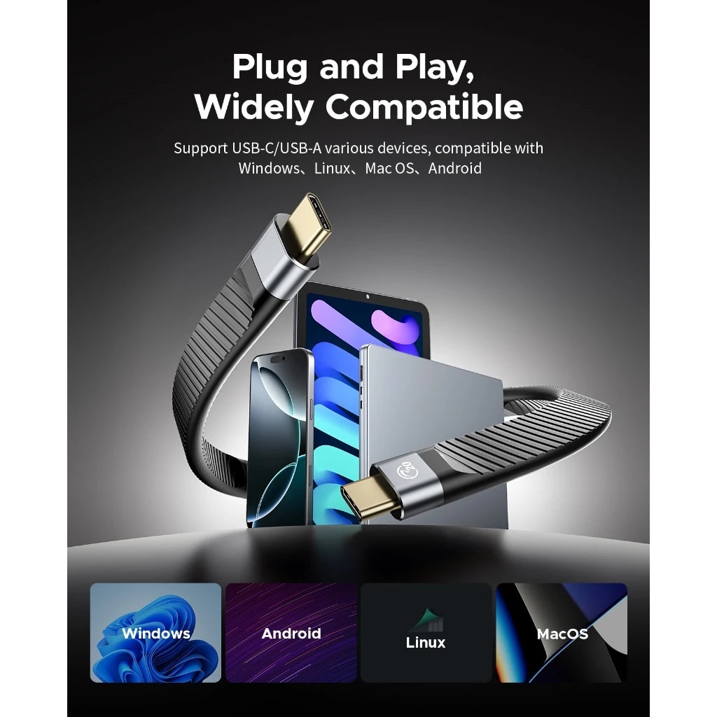 The actual transmission speed might not match the advertised speed. This is because the transmission speed is limited by the portable SSD, data cables, and the connected devices.